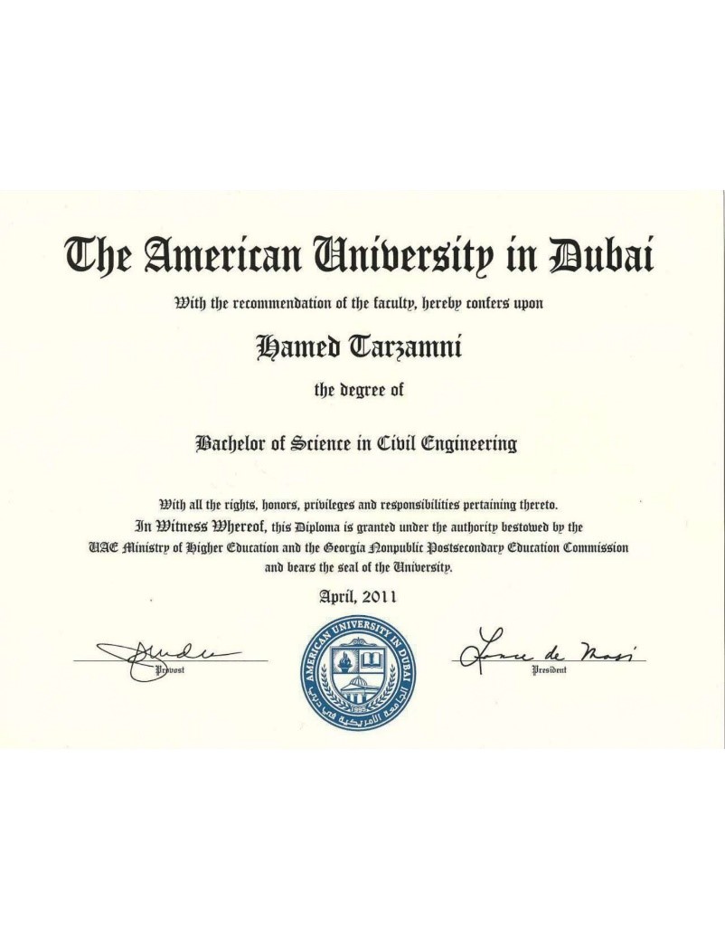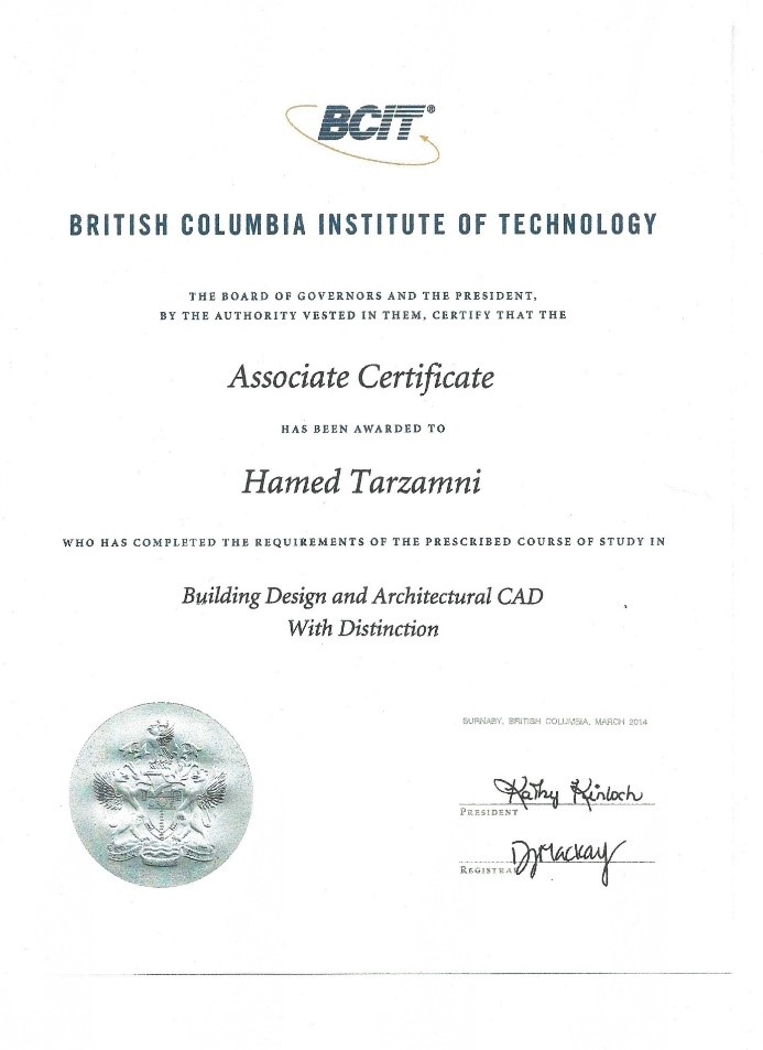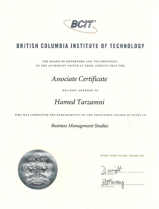 The Managing Director, Mr. Hamed Tarzamni is graduated from American University in Dubai (AUD) with bachelor of science in Civil Engineering program. Associated Certificate in Architectural Design and MBA in International Business Management are accomplished in British Colombia Institution of Technology (BCIT) in Canada.